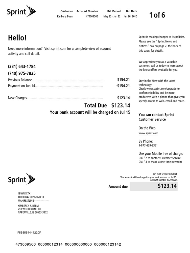 Sprint Bill Pdf Customer Account Number Bill Period Bill Date Brenda Long 584621239 Sep 13 Oct 12 Oct 16 2014 Hello 1 Of 10 Sprint Is Making Course Hero
